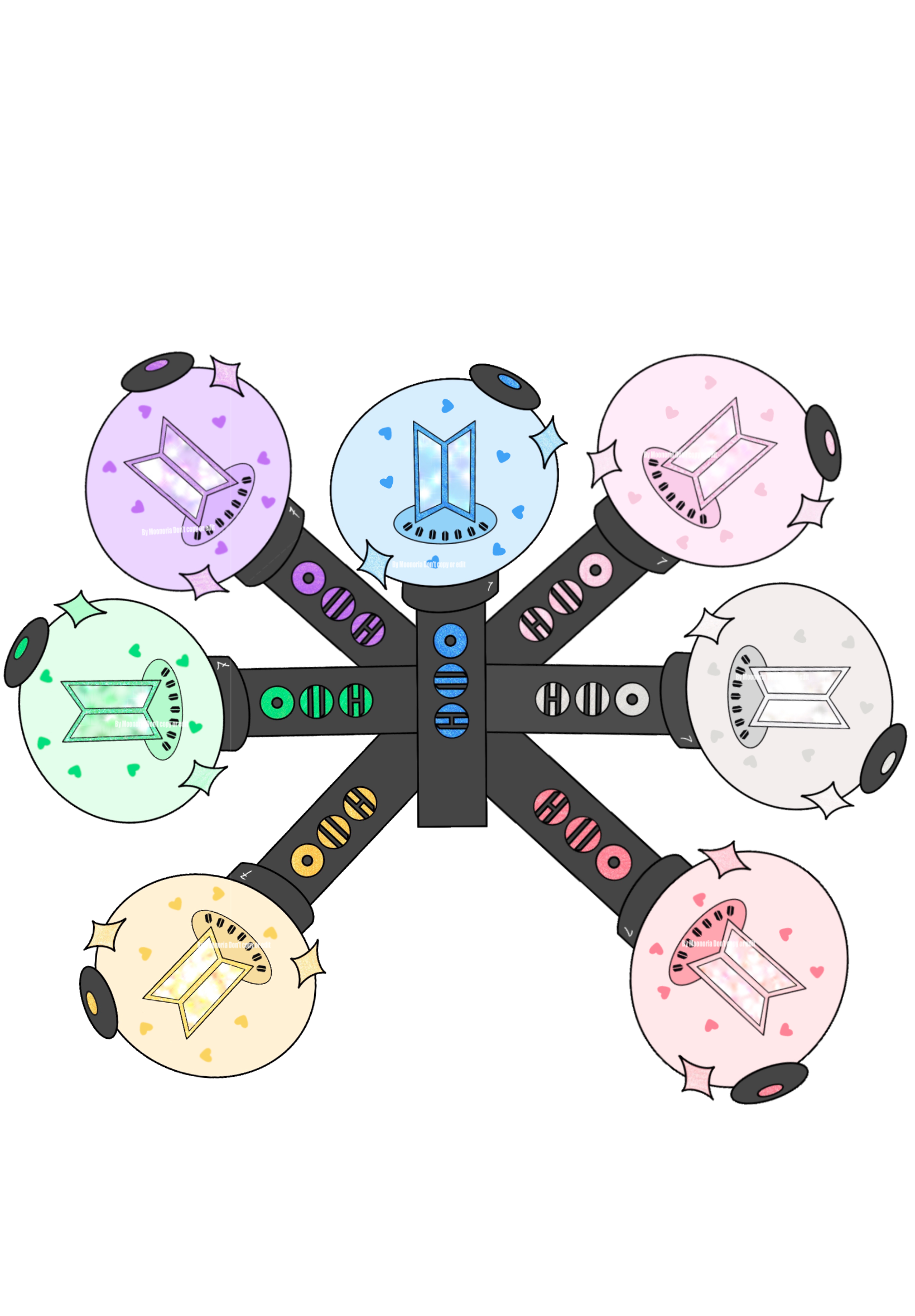 In order : Namjoon (blue), Seokjin (pink), Yoongi (silver), Hoseok (red), Jimin (yellow), Taehyung (green) & Jungkook (purple)